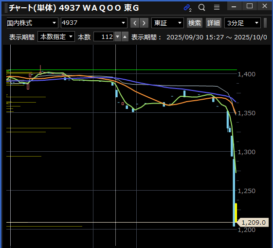 今日はもう全体弱くて、下手に触ると火傷するから、あとは適当に流してよーっと思ってたんだけど、大引けが近づいた頃に Waqoo がヒット。