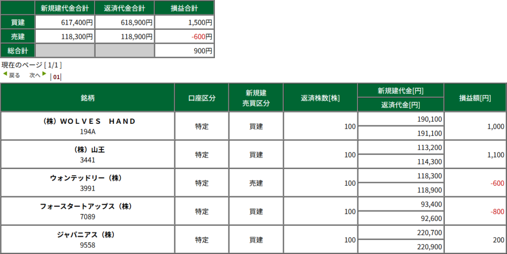 今日は、前場 ジャパニアス、WOLVES HAND、後場 山王 で指値が拾われたものの、いずれもちょい下げで、しかも先頭の100株だけなんで利益は伸びず。