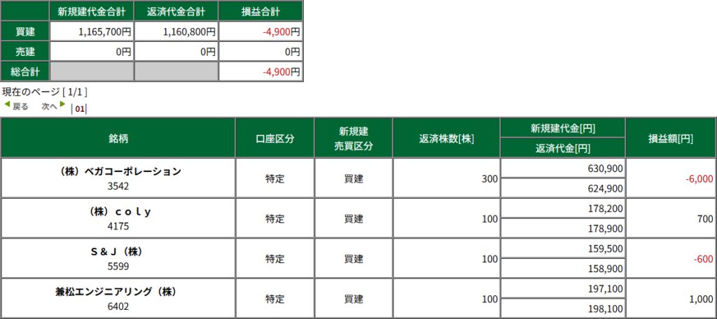 大引けに向けて、S&J と coly に弾込めしたけど、結果は差し引き 1ティック分獲れたのみ。