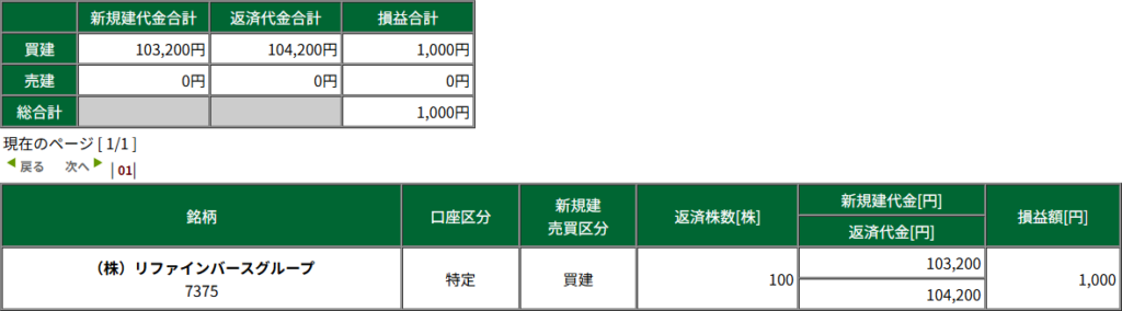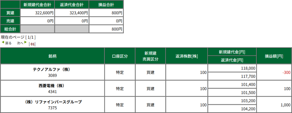 本日のトレード