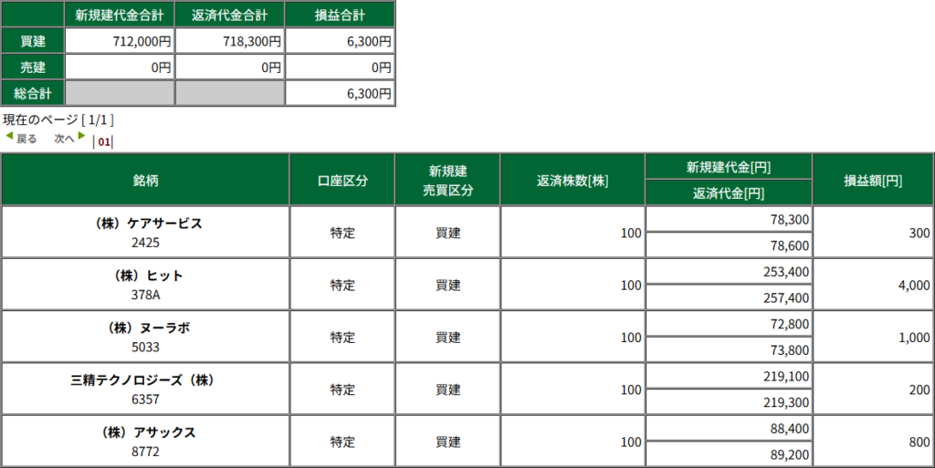 本日の収益は 6,300円でした。