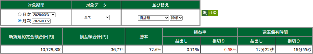 | 2026年3月 | +36,774 | 15-5-1-0 | 71.43% | 72.6% |